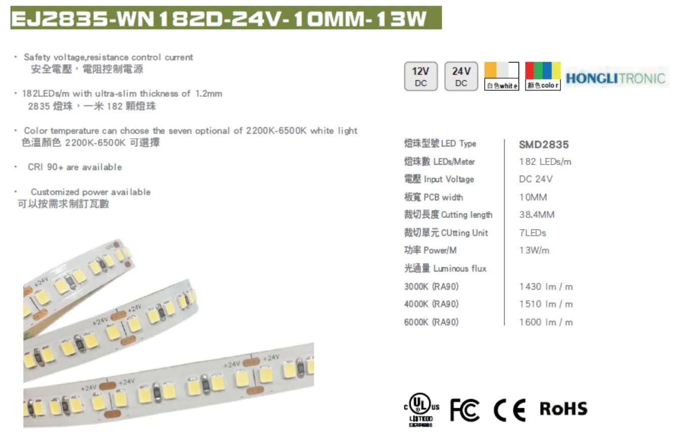 首頁 > 產品介紹 > LED 燈帶系列 > EJ2835-WN182D-24V-10MM-13W